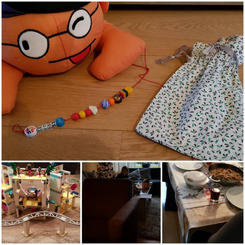 Nog even over de foto. Je ziet hier chemo casper en haar kanjer ketting, Noor aan het bouwen, het kerstdiner en uiteraard het eindresultaat van 6 uur bouwen.